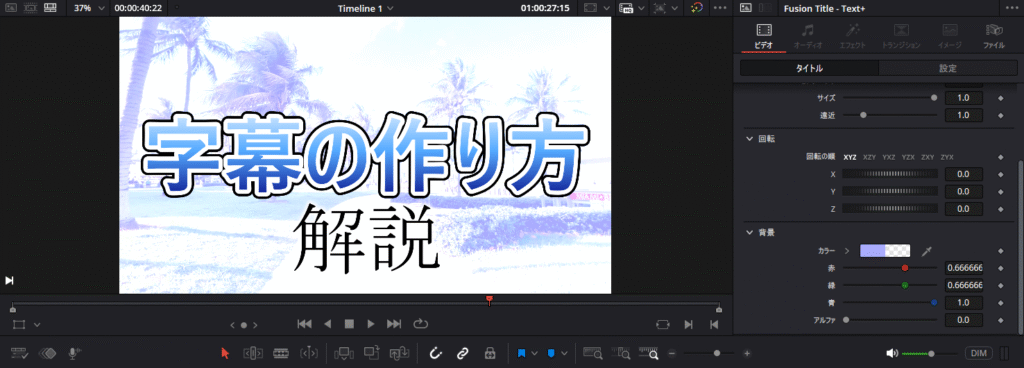 基本的に普通にテロップを出したいときは触りません。テロップをより強調したいときに使える設定を2つ紹介します。