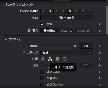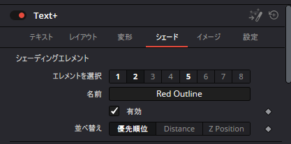 テキスト・レイアウト・変形・シェード・イメージ・設定と各項目がありますが、すべて使う必要はありません。主に使うことになるのはテキスト・レイアウト・シェードの3つになるのでこちらを解説します。