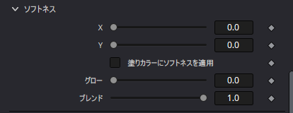 ソフトネスを変えるときはX・Y軸の数値を上げることでぼかしを追加します。