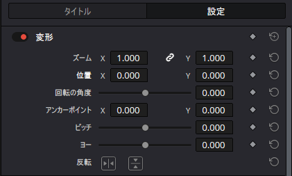 「位置」の項目でX・Y軸の数値を入力。もしくは数値内をクリックしたまま左右に動かすと直感的にテロップを動かせます。